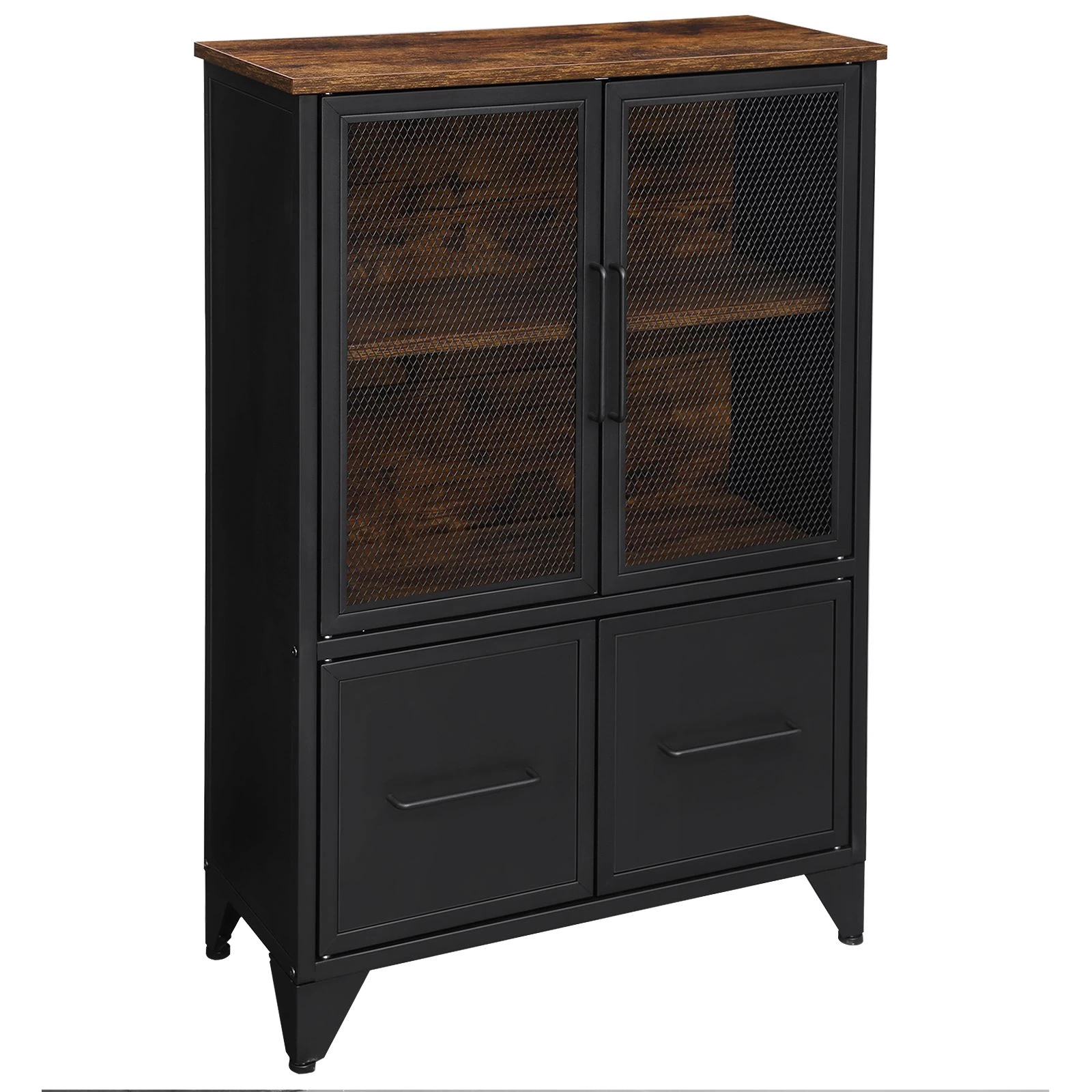 Vitrinekast Jaxx met 4 deuren, gemaakt van spaanplaat en staal.