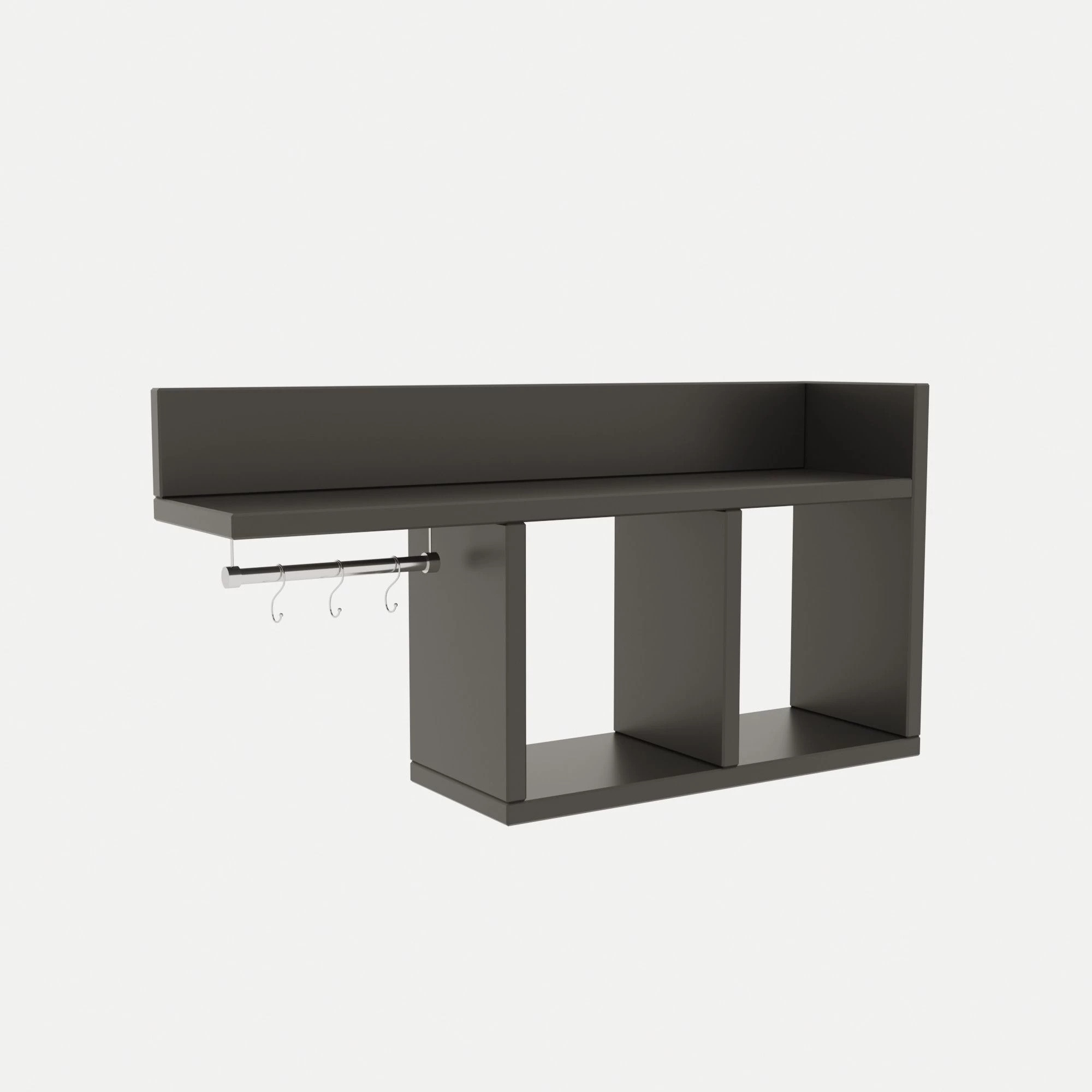 De Wandplank is gemaakt van 100% gemelamineerd spaanplaat, met een dikte van 18mm. Hij is 72 cm breed, 37 cm hoog en 18 cm diep, met een onderste plank van 42 cm breed. Hij is voorzien van een multifunctionele wandhaak en verschillende planken, en kan eenvoudig aan de muur worden bevestigd. De plank is verkrijgbaar in een strakke antracietkleur.