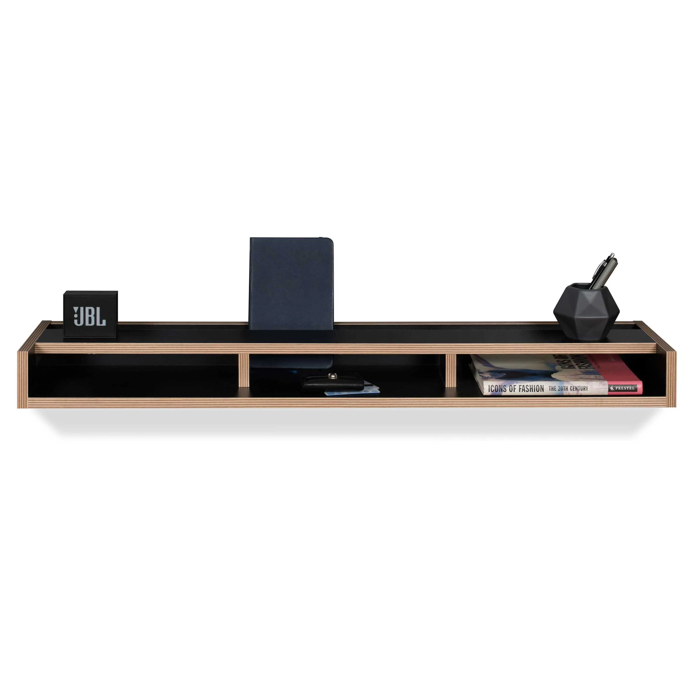 Zwarte legplank Ply met multiplex randen. Onderverdeeld in 3 compartimenten.