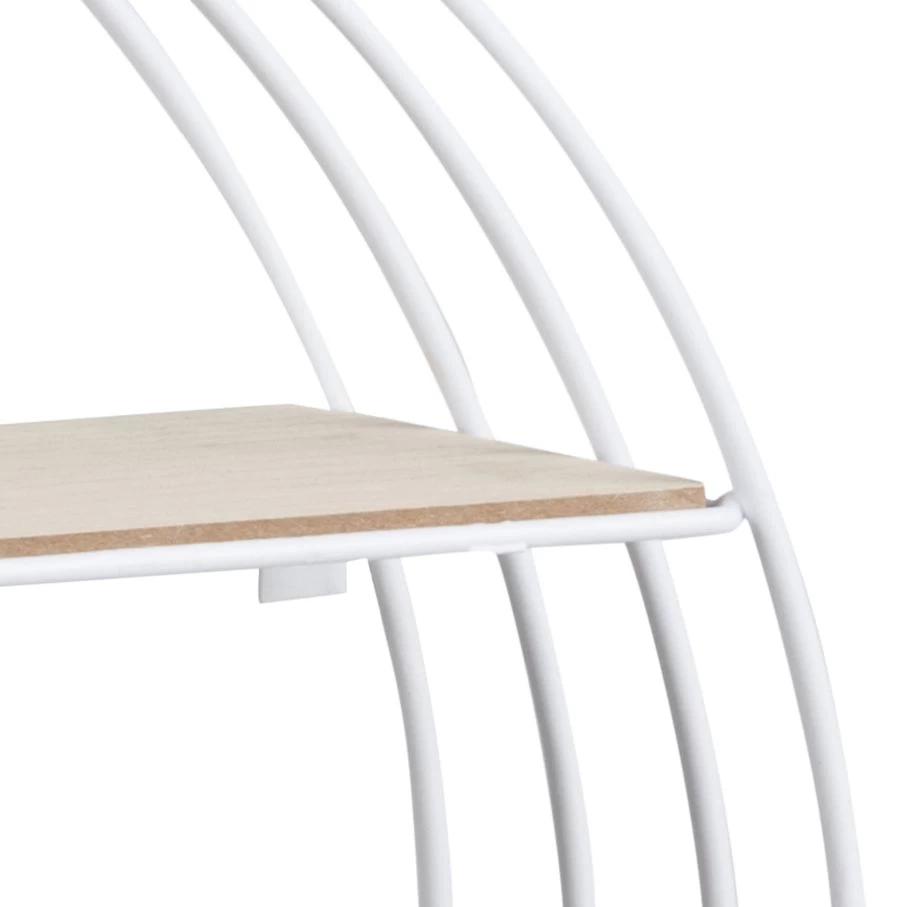 Wandrek Bas met diameter 45cm, gemaakt uit een gepoedercoat wit metalen frame en 4 legplanken in Paulownia-hout.