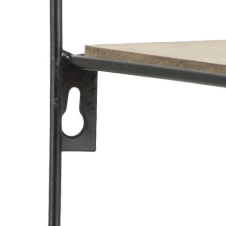 Voeg een industriële toets toe aan je moderne interieur met dit Bas-wandrek. Het meubel met diameter 45cm is uitgerust met vier legplanken, waarvan de lengte varieert tussen 17,5cm en 26,3cm. Die legplanken zijn gemaakt uit Paulownia-hout in natuurkleur, dat op een stijlvolle manier contrasteert met het zwarte, gepoedercoate metalen frame. Elke legplank kan tot ongeveer 3kg belast worden. Het wandrek is ongeveer 10cm breed en kan eenvoudig aan de muur worden bevestigd. Een praktisch en smaakvol accent in een elegante woonkamerinrichting!