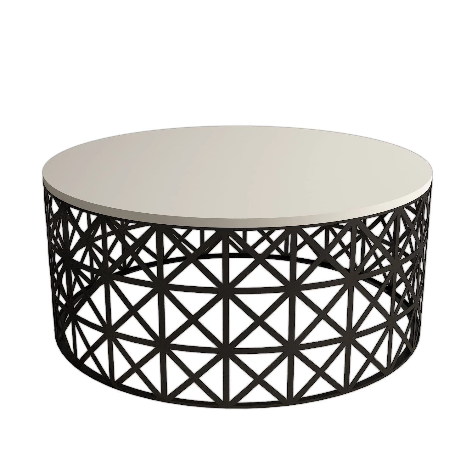 Woody Fashion Salontafel heeft een 100% gemelamineerde spaanplaat met een dikte van 18 mm, 1 mm PVC band, smeedijzeren poten en een afmeting van 90x90x38 cm. Hij wordt geleverd in een crème-zwarte kleur