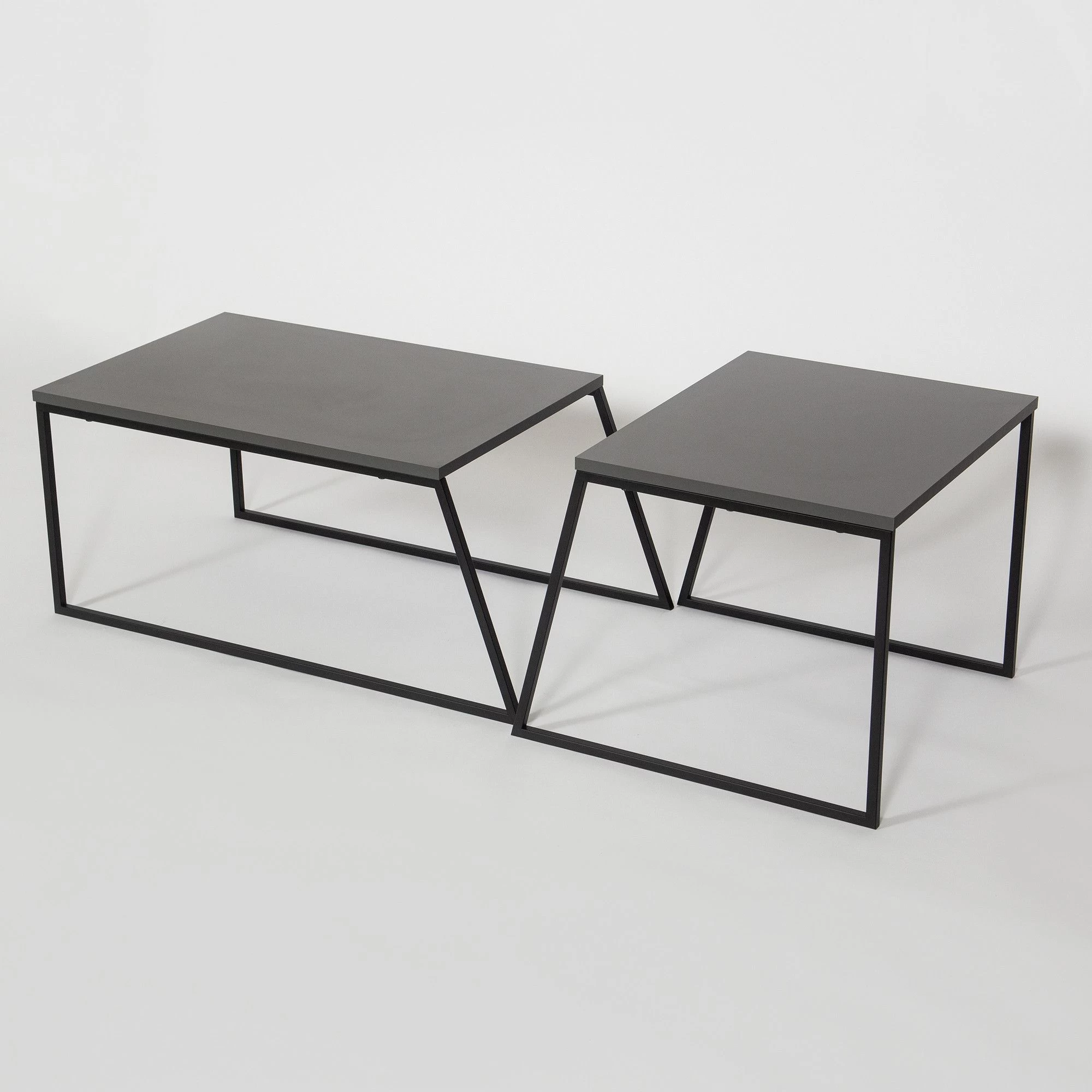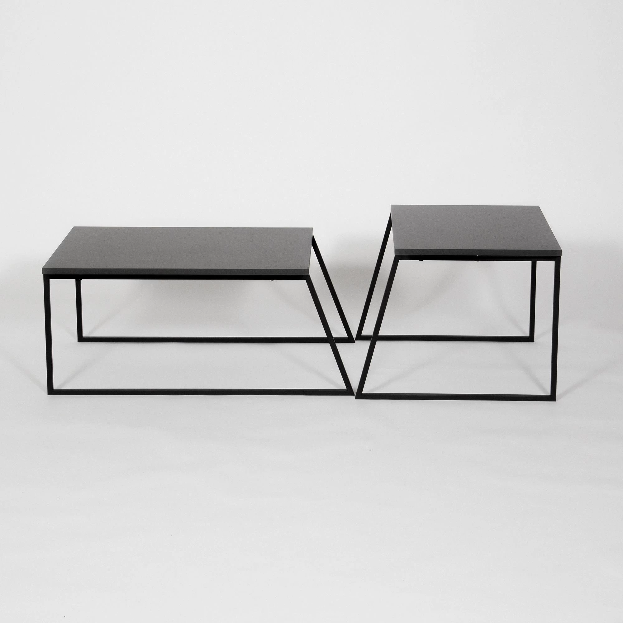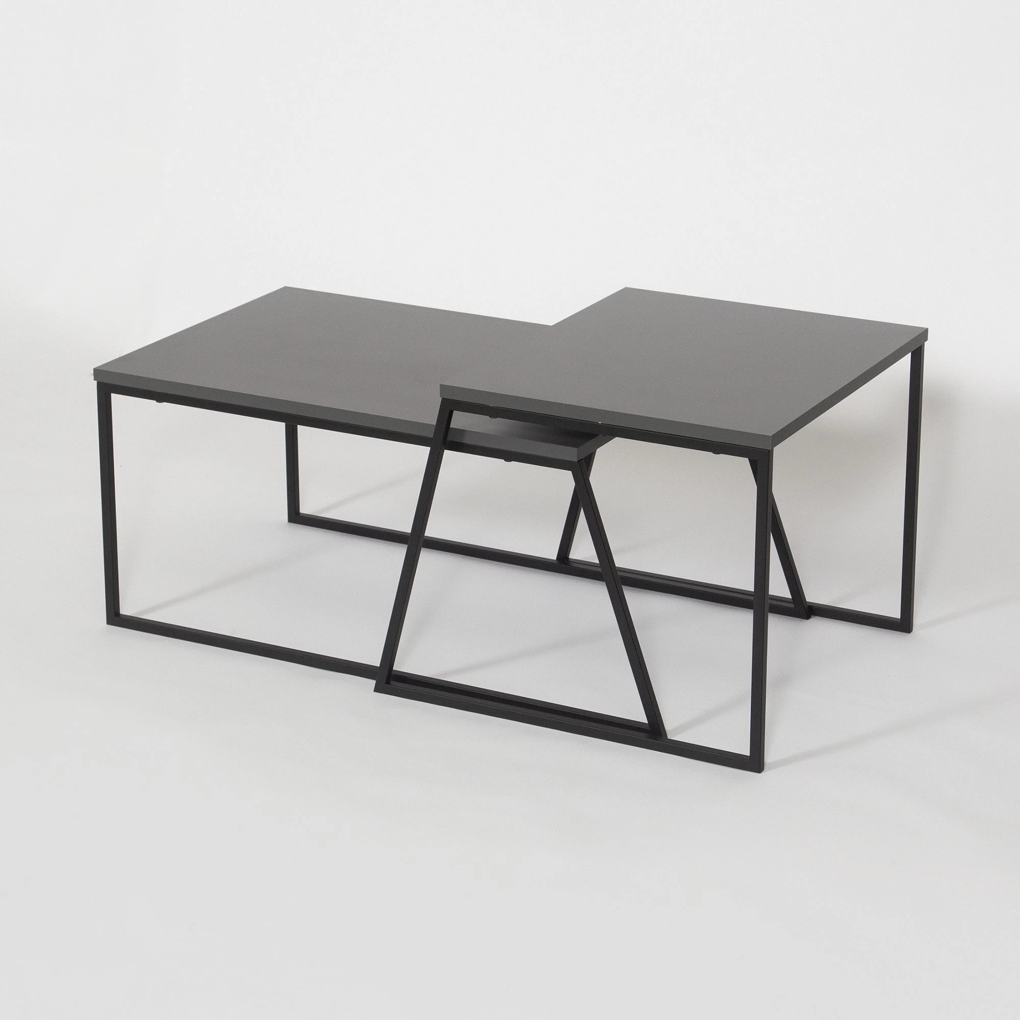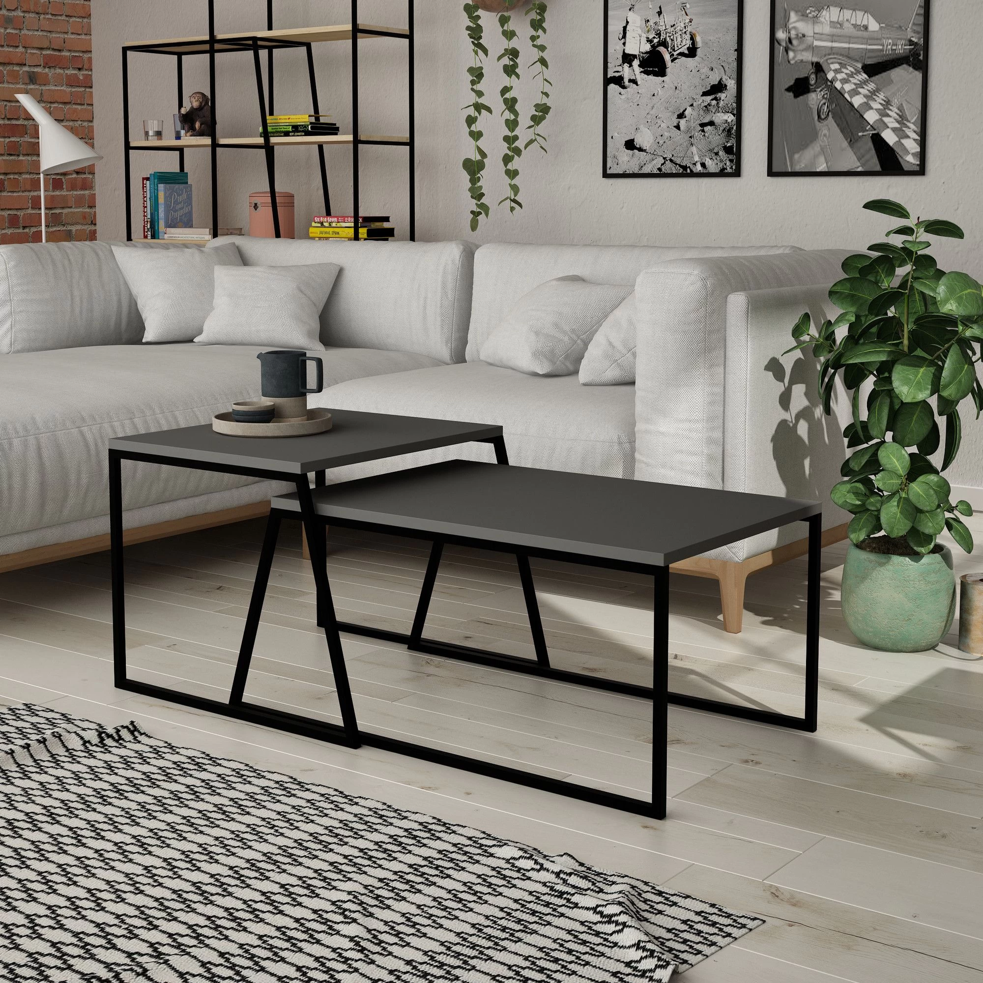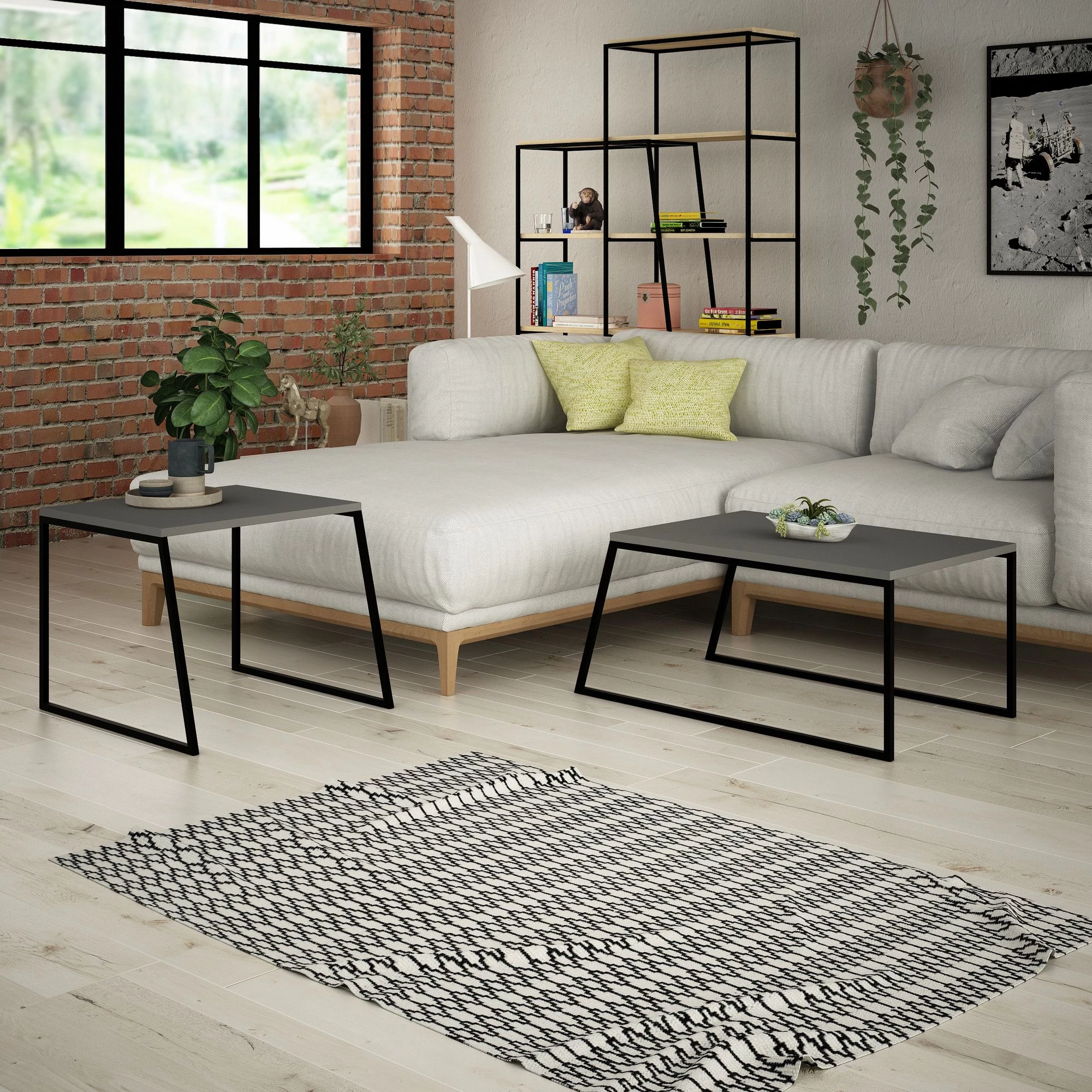 Woody Fashion Salontafelset: Stijlvol en duurzaam, gemaakt van 100% gemelamineerde spaanplaat met een metalen frame. Kleur: antracietzwart.