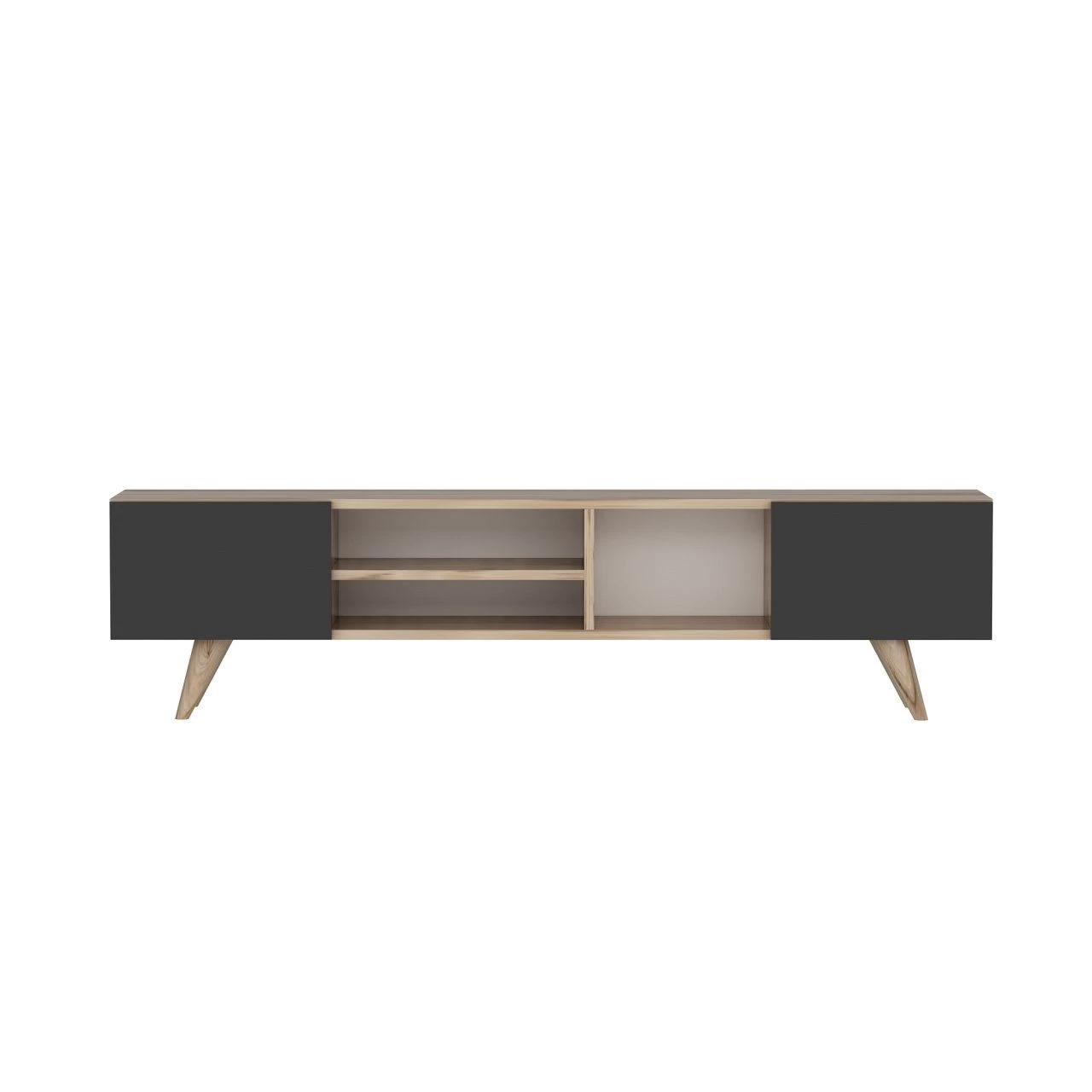 De brede breedte van 160 cm biedt comfortabel plaats aan grote tv’s, terwijl de hoogte en diepte voldoende ruimte bieden voor extra apparaten zoals spelconsoles, geluidssystemen en dvd-spelers. Organiseer je mediacollectie en accessoires met gemak dankzij de royale opbergvakken en planken.