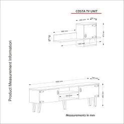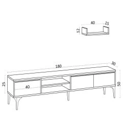 Tera Home TV-meubel | 100% Melamine Laag | 18mm Dikte | Extra Opbergruimte | Walnoot Wit