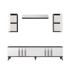 Woody Fashion TV-meubel | Melamine Coating | Metalen Poten | 180x30x50 Cm | Wit Zwart